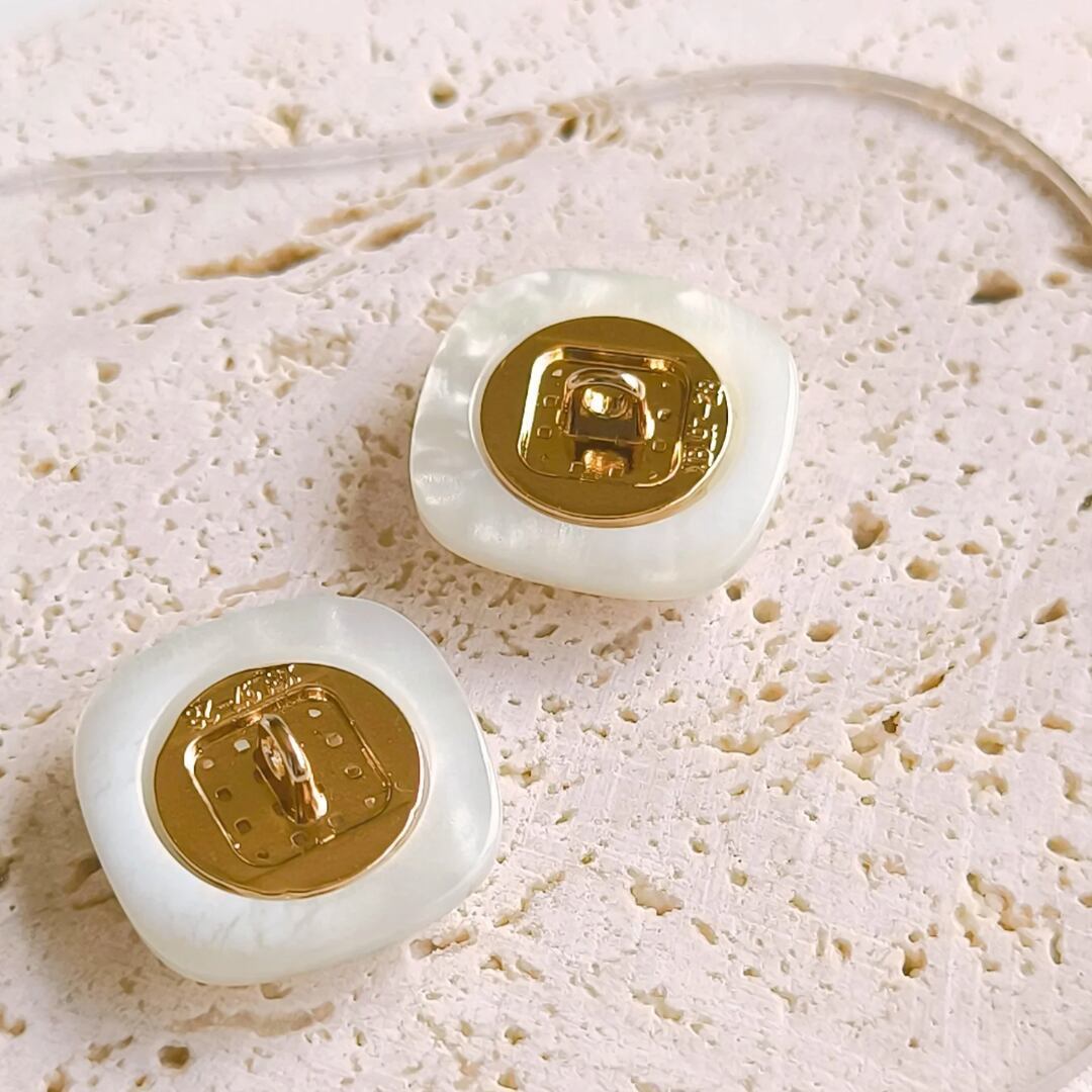 網目シェル調スクエアボタン(ホワイト) 23mm シャンクボタン インポート 輸入